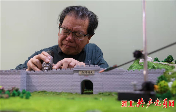 2022年1月5日,河北省张家口市非遗传承人在为作品《境门春色》收尾。