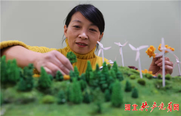 2022年1月5日,河北省张家口市民间艺人在为作品《天路秋韵》点缀装饰。