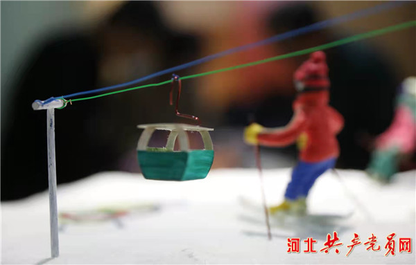 2022年1月5日,河北省张家口市非遗传承人制作的雪场观光缆车。