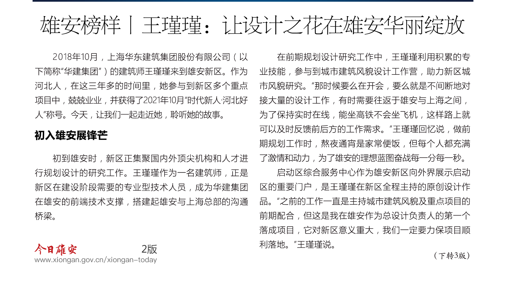雄安榜样丨王瑾瑾:让设计之花在雄安华丽绽放
