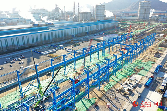 近日,在河北省迁安经济开发区,唐山燕阳冷轧有限公司年产500万吨冷轧薄板项目建设现场,工人们正在紧张施工。