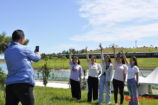 游客在迁安市金岭矿山生态修复旅游观光景区打卡留念(资料图片)。 商立超摄