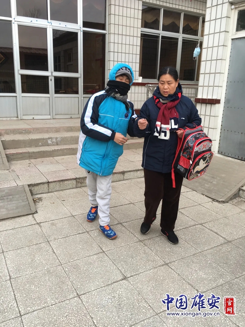 张秀先陪着王泽宇去上学。雄安新区宣传网信局供图