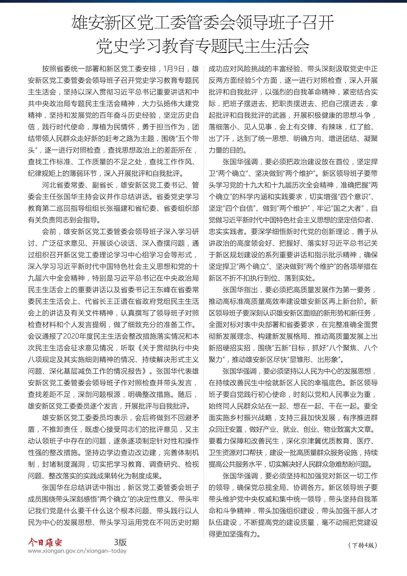 《今日雄安》 2021年1月10日 第542期