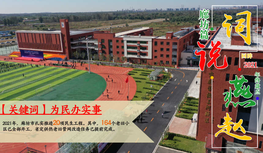 2021年,廊坊市扎实推进20项民生工程。实施“四好农村路”提升工程,已建设改造农村公路321公里,完工率106%。强化住房和供暖保障能力,15个城中村改造工程已全部启动,棚改新开工5881套,棚改基本建成2670套,完成全年任务的100%;164个老旧小区已全部开工;省定供热老旧管网改造任务已提前完成。