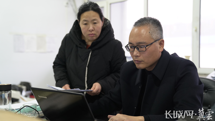 曹治彦(右)和同事一起整理调研资料。长城网·冀云客户端记者郭硕 摄