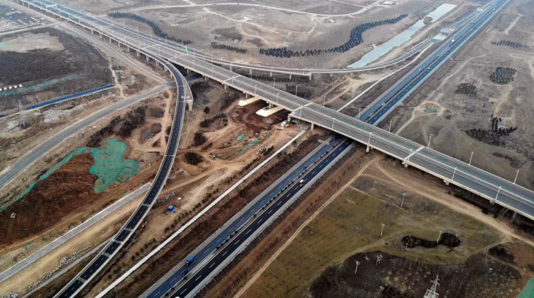 这是2022年1月5日拍摄的京雄高速与津雄高速交汇处(无人机照片)。新华社记者 骆学峰 摄
