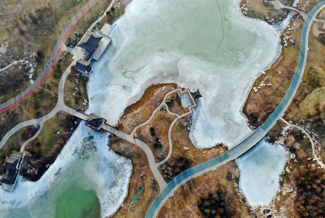 这是2022年1月5日拍摄的雄安新区悦容公园冬日景色(无人机照片)。新华社记者 骆学峰 摄