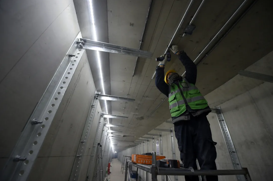 2022年1月6日,在雄安新区起步区燕赵大街综合管廊项目,工人在安装管材。新华社记者 骆学峰 摄