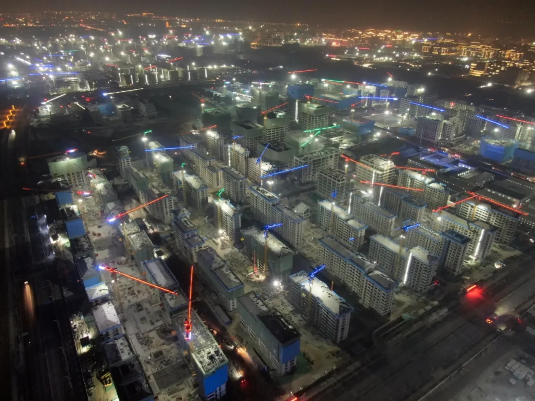 这是2022年1月4日拍摄的雄安新区容东片区华望城项目夜景(无人机照片)。新华社记者 骆学峰 摄