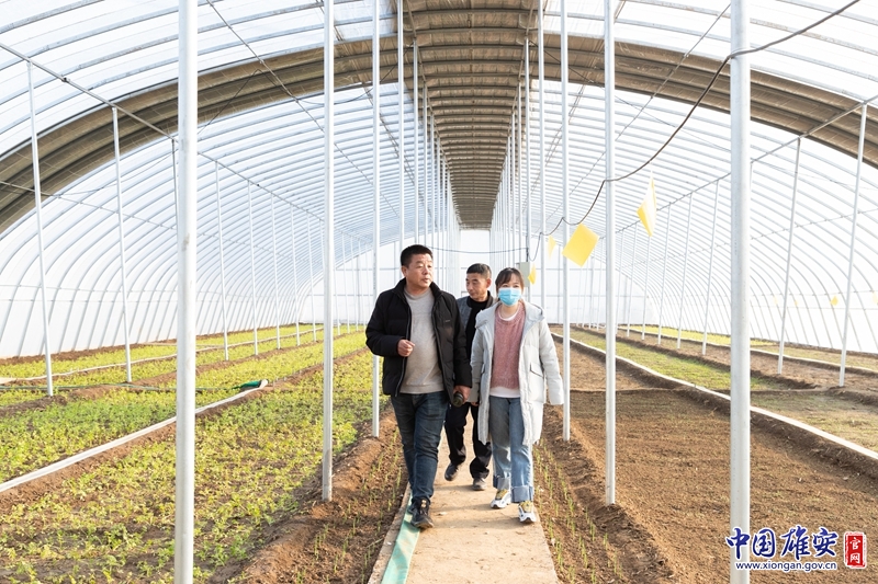 “今年我们有两个新建的大棚,里面种满了快菜、芹菜、油麦菜、香菜等多种蔬菜,还有一片地种了些菊花。明年的3、4月份菊花应该就能长好出售了。”杨宏记说,现在这片地种了20多亩,才两个大棚,等天气再暖和点,把另外的150亩也都种上瓜果、蔬菜等,需要搭建大棚的也同步搭建上大棚。图为杨宏记带领同事查看蔬菜生长情况。中国雄安官网高盟 摄