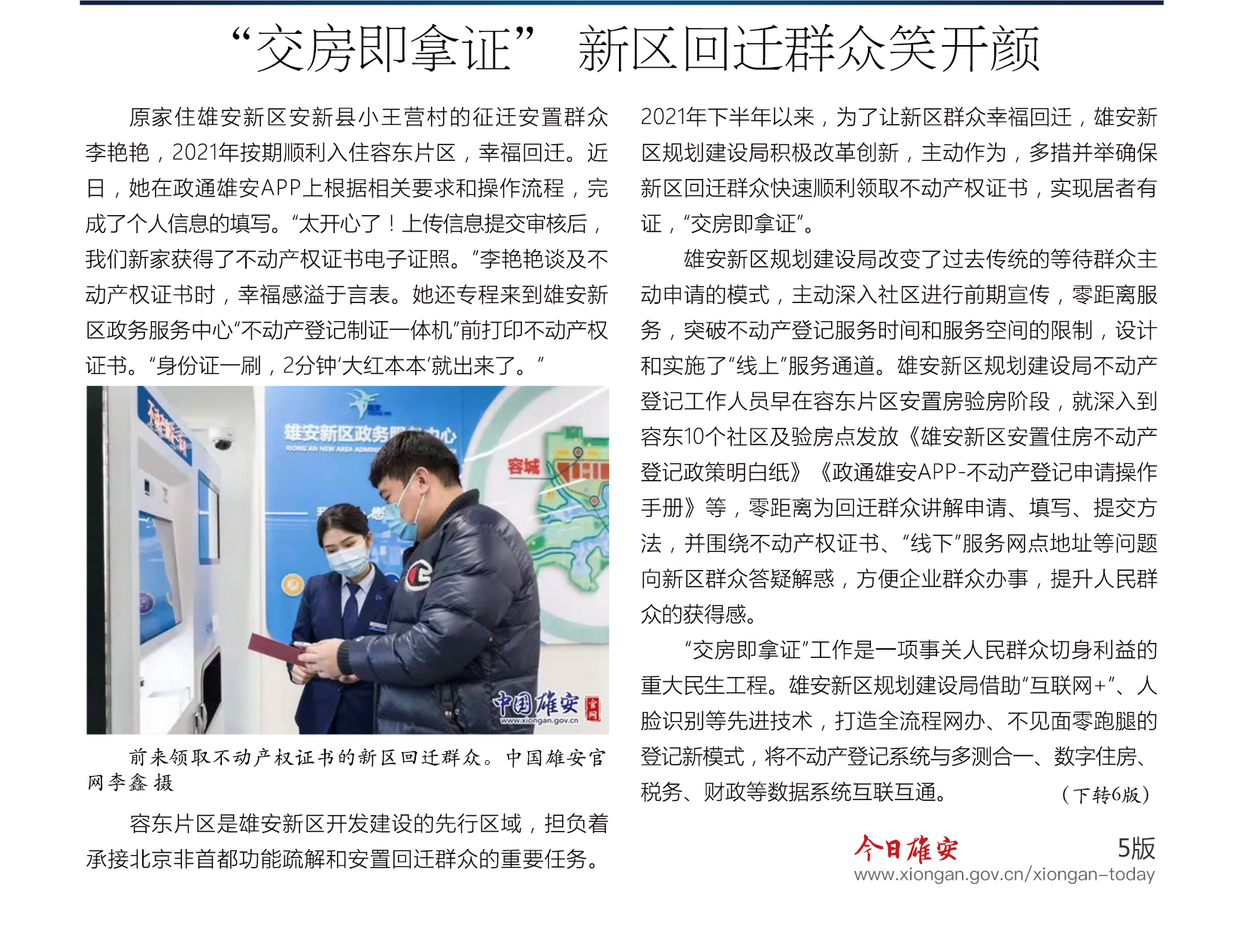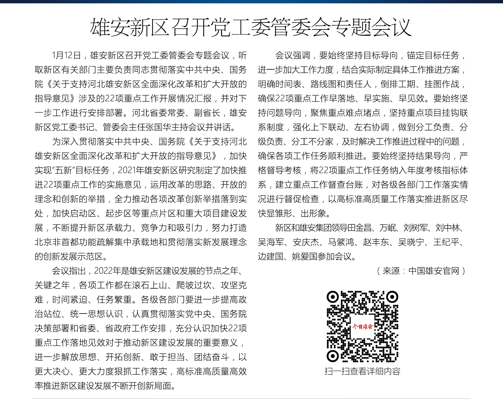 为新区服务疏解北京非首都功能和大规模开发建设做好服务保障工作。