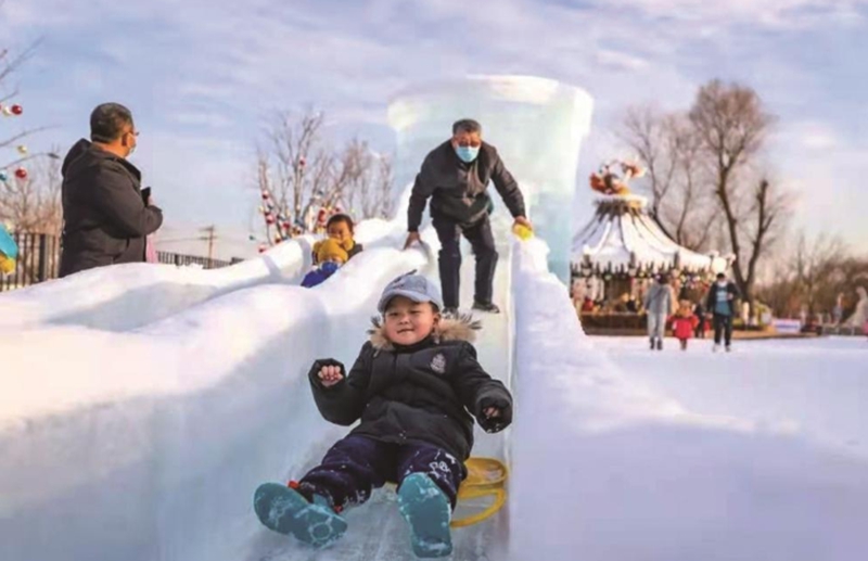 值得一提的是,本届冰雪欢乐季活动还特别增加了玉如意冰滑梯、冬奥主题雕塑小品等特色项目,让游客近距离感受浓浓的冬奥气息。