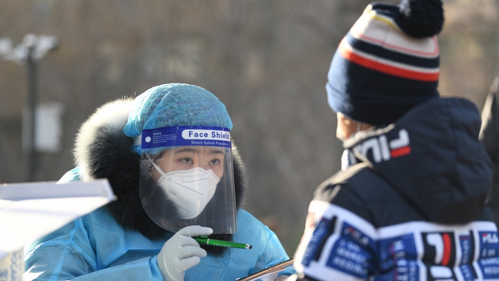 1月15日,天津,工作人员正在进行核酸检测登记。(新华社记者孙凡越 摄)