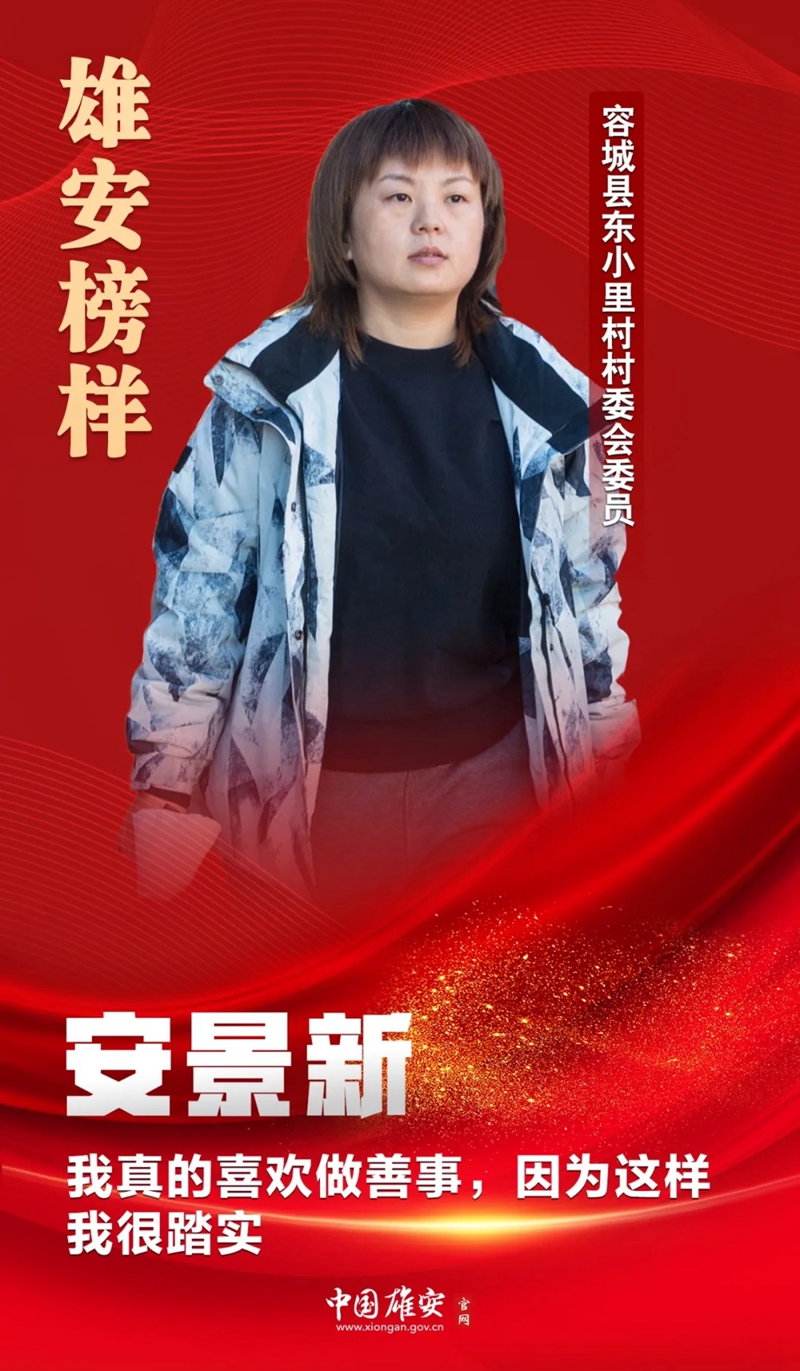 “献爱心是会上瘾的,我认为,值!”每每看到困难群众在逆境中挣扎,安景新都会伸出援手拉一把。如今,她在村里是一名村委会委员,负责党建、妇女儿童等工作。“教育很重要,我十分关注贫困孩子的上学问题。”安景新说。她后来加入了保定市爱心协会,继续发扬志愿精神,并积极参加协会组织的公益活动。在“爱心助学”活动中,她去唐县和暖小学、三道岗小学捐赠课桌椅和图书;为唐县尧之谷青少年研学实践教育基地送去2000本爱心图书;在“引资助学”活动中,携手廊坊侯国振爱心团队资助容城中学20名贫困生。安景新还在“一对一帮扶”保定市顺平县大悲乡黄井小学四年级的学生小慧(化名),将无偿资助孩子到高中毕业。她还资助过其他的孩子,她希望被她资助过的孩子都可以成长为祖国的栋梁之才,希望他们怀着一颗感恩的心,将爱心传递给身边的每一个人。