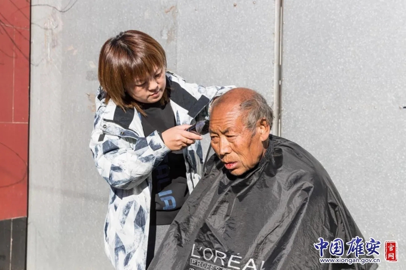 安景新为村里的老人理发。中国雄安官网牛思佳 摄