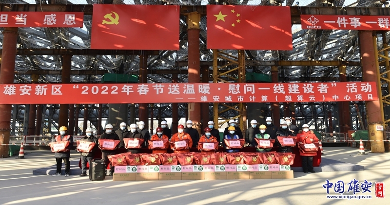 万岷慰问雄安城市计算(超算云)中心项目一线建设者。雄安新区党群工作部供图