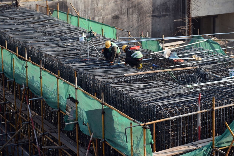1月5日,工人在雄安新区首都医科大学宣武医院雄安院区项目工地施工。新华社记者骆学峰 摄