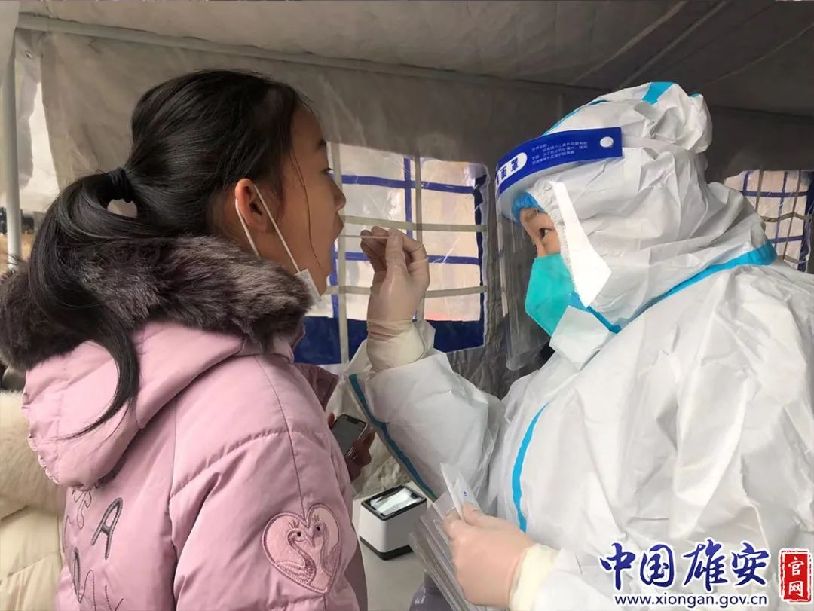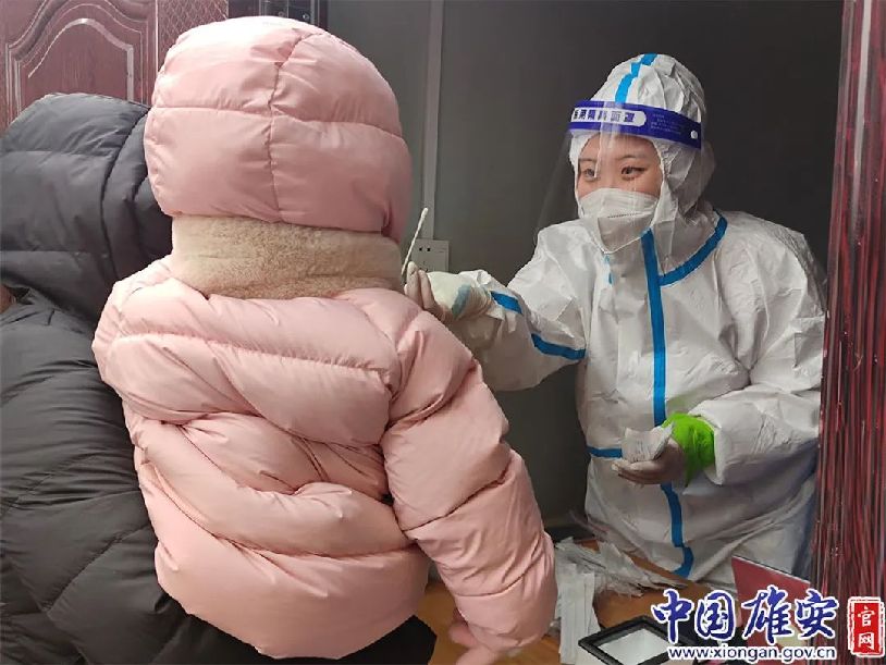 医护人员面带微笑为小朋友做核酸检测。中国雄安官网李鑫 摄
