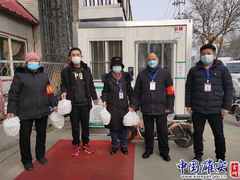 安新县中华家园小区业主为小区疫情防控工作人员送来热腾腾的饺子。安新县委宣传部供图