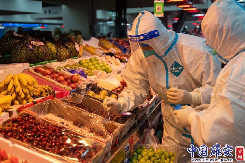 安新县疫情防控工作人员对商超食品进行核酸检测取样。中国雄安官网刘东尧 摄
