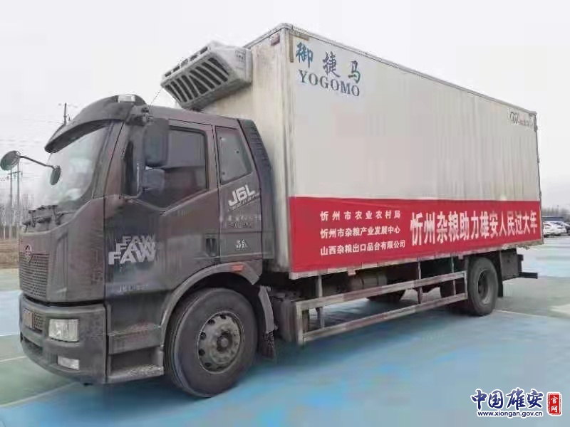 1月26日,满载山西忻州特产的运输车抵达雄安新区。忻州市农业农村局供图