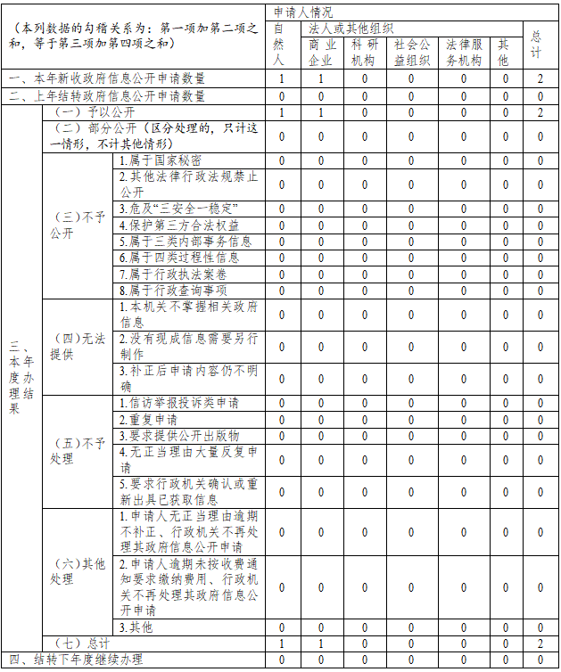 三、收到和处理政府信息公开申请情况