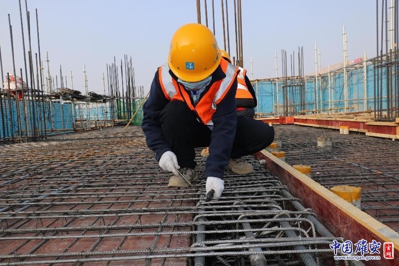 项目施工现场,建设工人正在进行钢筋绑扎作业。中国雄安集团公共服务管理公司供图