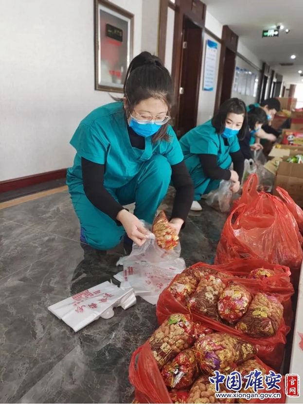 锦泰医学观察点的医务人员为隔离人员准备好瓜子、水果、零食。安新县医院供图