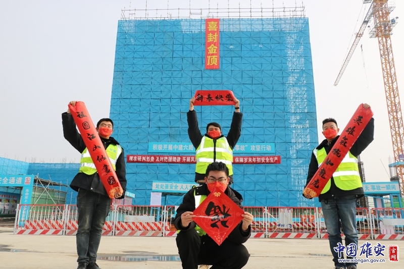 雄安新区启动区西北部初中项目部送拜年祝福。于棵 摄