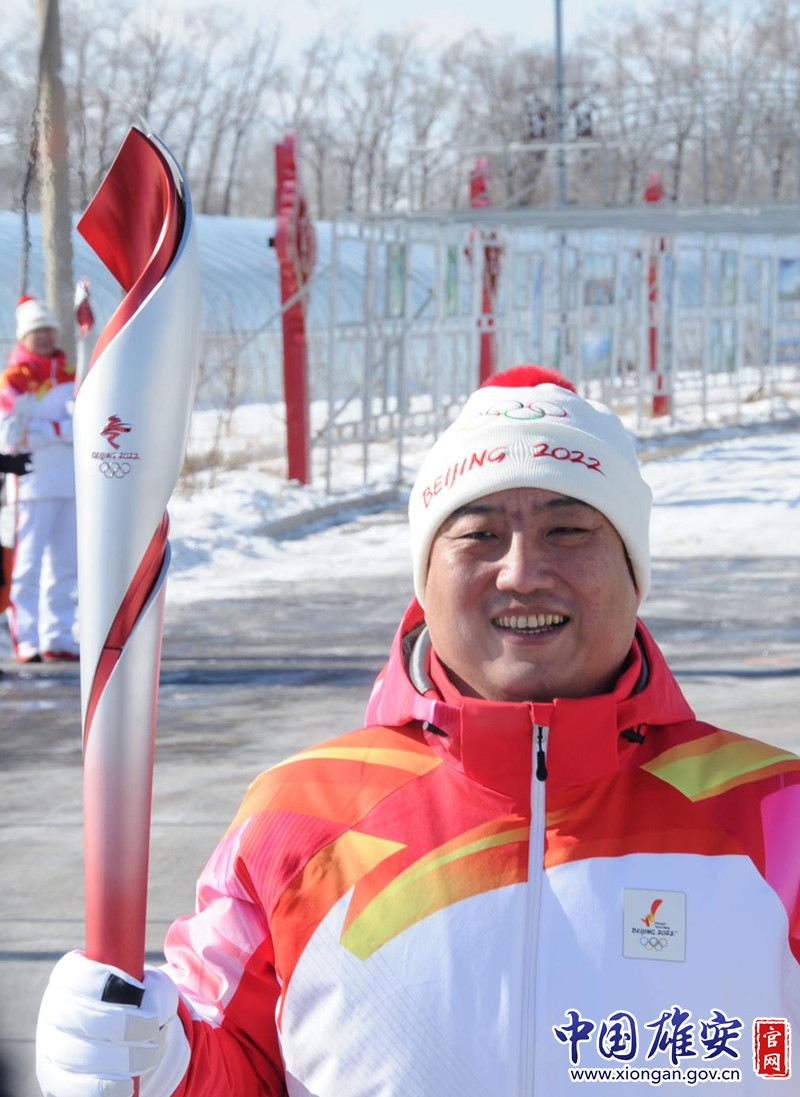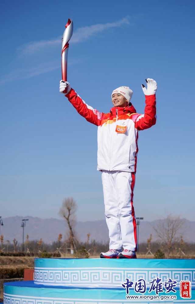 火炬手史冬鹏在传递火炬现场。雄安新区公共服务局供图
