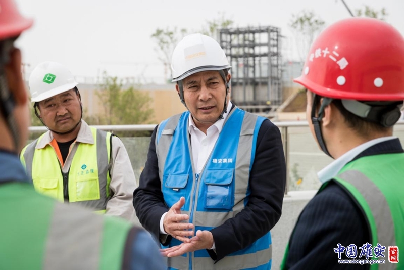 杨忠在雄安建设一线与建设者交流。中国雄安官网李鑫 摄