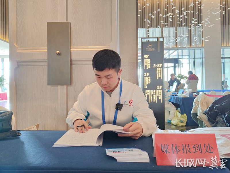 志愿者白一江在核对媒体记者登记信息。记者代晴 摄
