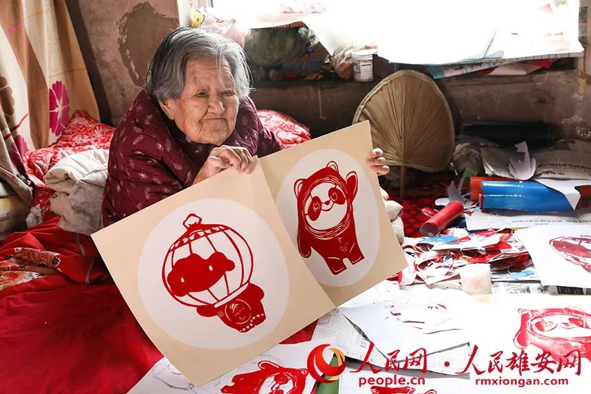 “太漂亮了!”在雄安新区容城县东小里村的一户人家,一位老人坐在炕上,只见她手中的剪刀上下飞舞,不一会儿,北京冬奥会、冬残奥会吉祥物“冰墩墩”、“雪容融”便诞生了,引得围观者一阵称赞。