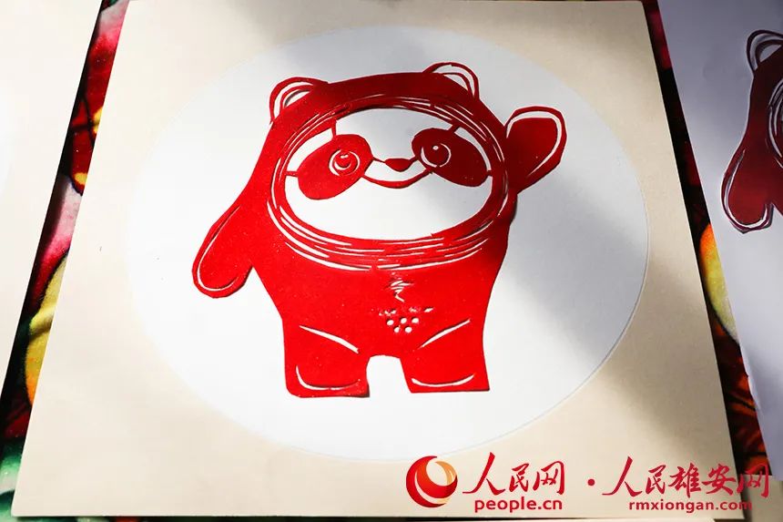 图为孙秀芹老人剪的“冰墩墩”。人民网王红 摄