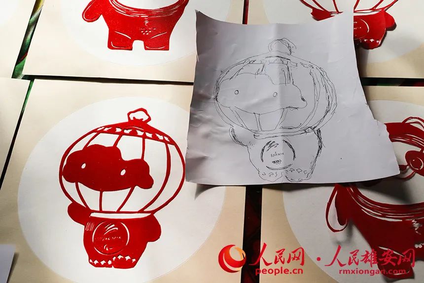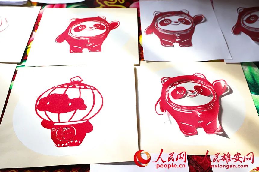 “母亲平时剪花鸟鱼虫比较多,‘冰墩墩’和‘雪容融’今天还是第一次剪。”孙秀芹的儿子刘国占告诉记者,“我把‘冰墩墩’‘雪容融’的图片拿给她看,不一会儿她就把底稿画出来了,小半天的时间就剪出来不少,还自己为‘冰墩墩’设计了动作。”