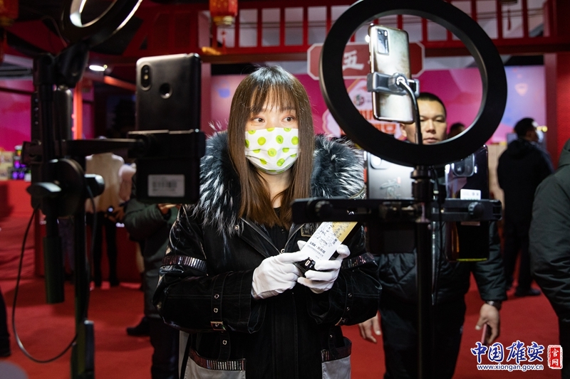 活动现场,参展商在进行手机直播。中国雄安官网毛鹤然 摄