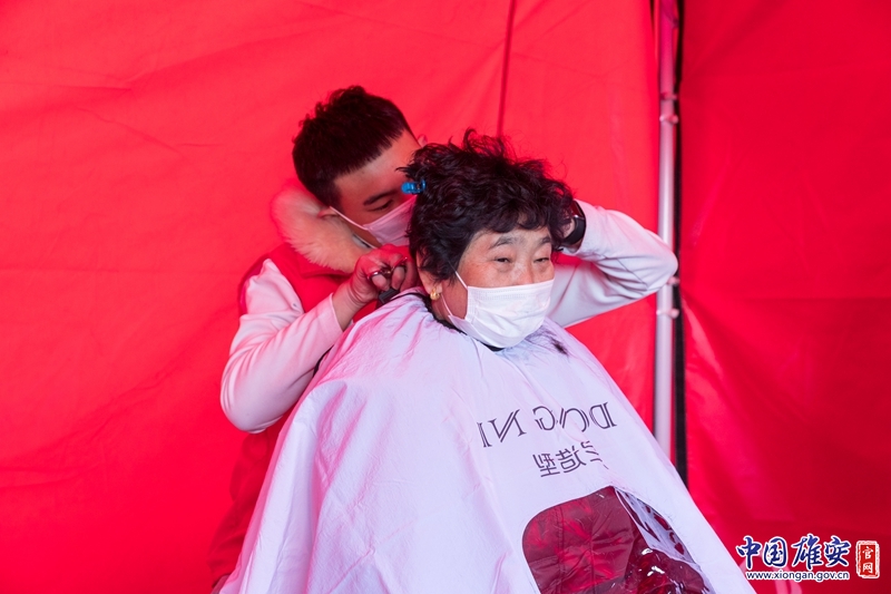 活动现场,志愿者为60岁以上老人免费理发。中国雄安官网牛思佳 摄