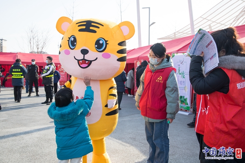 活动现场,孩子与活动吉祥物挥手问好。中国雄安官网牛思佳 摄