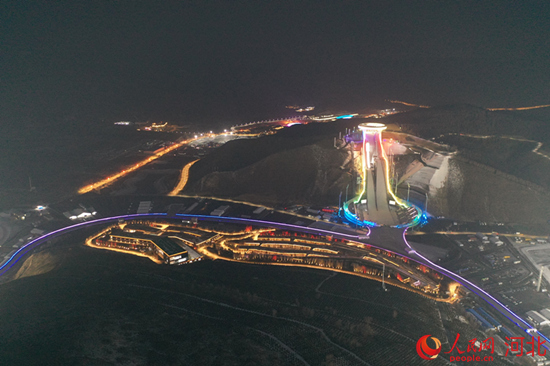 张家口赛区国家跳台滑雪中心夜景。冯波 摄