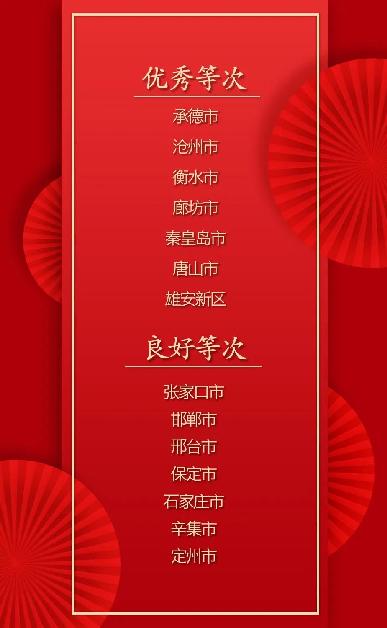 近日,省委办公厅、省政府办公厅印发《关于2021年度河湖长制工作考核结果的通报》,承德、沧州、衡水、廊坊、秦皇岛、唐山市和雄安新区评定为优秀等次,张家口、邯郸、邢台、保定、石家庄市和辛集、定州市评定为良好等次。