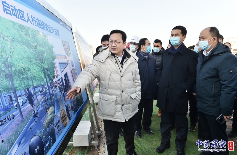 张国华一行先后来到启动区西北部初中项目、东北部居住片区(一期)、海岳大街与NA10道路交叉口、燕赵大街与NA10道路交叉口、史家胡同小学西侧路段(NC3样板段)、EB4道路(绿谷)项目,R1线金融岛站项目现场查看建设情况,与建设单位相关负责人进行交流,了解项目建设安排计划和实施情况,对相关工作提出明确要求。