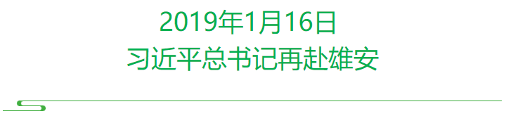 2019年1月16日上午,习近平来到河北雄安新区考察调研。在市民服务中心,他听取了雄安新区总体规划、政策体系及建设情况介绍,视察了服务窗口,与工作人员、办事群众和部分进驻企业代表亲切交流,并与建设工地工人进行了视频连线。