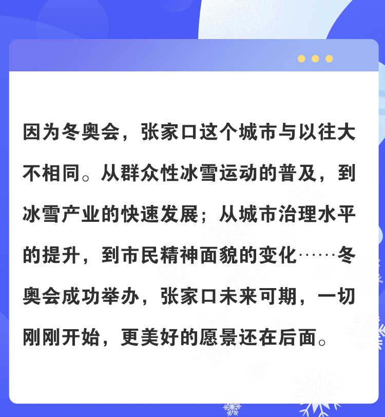 以小见大,见微知著。冬奥之城张家口以“绣花”功夫对待着一片片雪花,体现着城市管理精细化、专业化、服务化。“以雪为令、随下随清、雪停路净”的清雪模式,见证了城市应急动员能力的新提升,在全力做好冬奥服务保障的同时交出了一份出色的城市治理答卷。(记者 张世豪 刘梦妍 周亚彬)