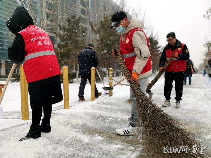 党员干部、城市志愿者、社区居民也都积极参与到城市除冰铲雪工作中。长城网·冀云客户端记者 张晨光 摄