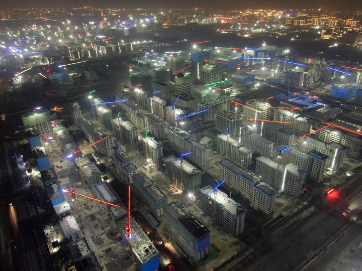 这是2022年1月4日拍摄的雄安新区容东片区华望城项目夜景(无人机照片)。新华社记者骆学峰 摄