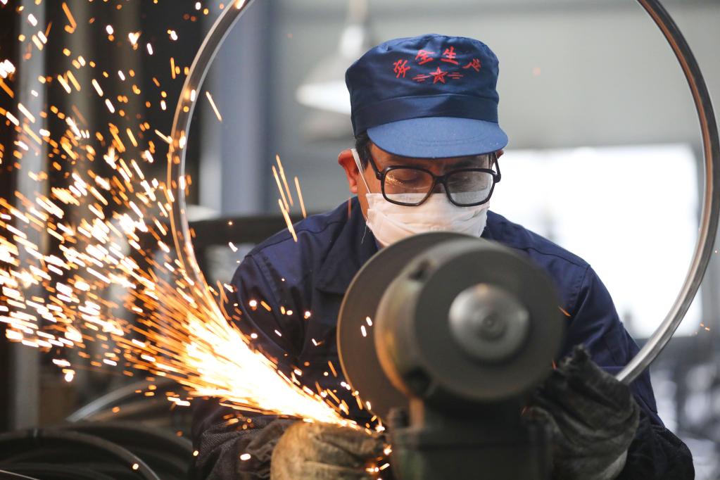 2月7日,在浙江省杭州市临安区天目山镇一家外贸企业,工人在抛光自行车钢圈。新华社发胡剑欢 摄