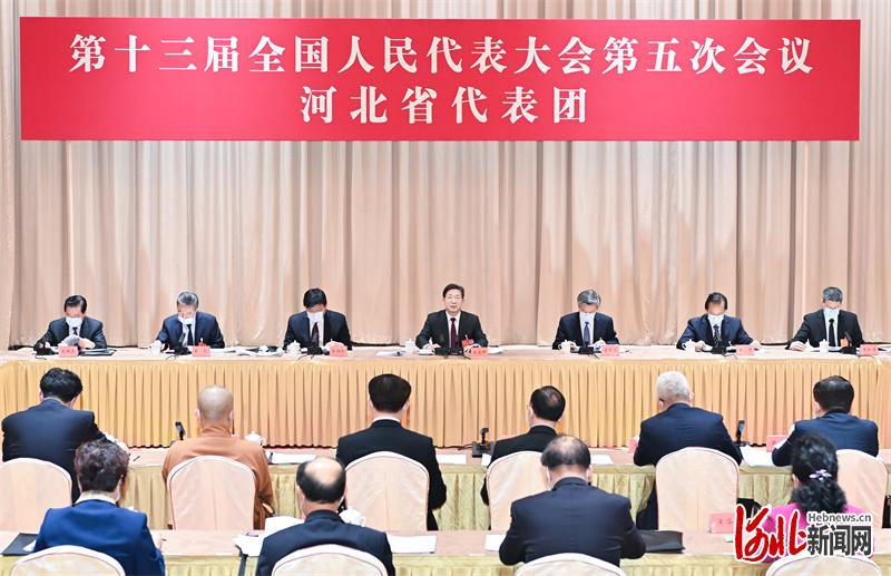 3月10日,出席十三届全国人大五次会议的河北代表团举行小组会议,审议各项决议草案。河北代表团团长、省委书记、省人大常委会主任王东峰,河北代表团副团长、省委副书记、省长王正谱出席会议。