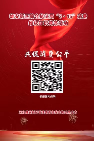 为切实维护消费者合法权益,着力营造安全放心的消费环境,增强群众消费维权知识的普及度、知晓度、认知度,助力新发展阶段经济社会平稳健康发展,雄安新区综合执法局现组织开展2022年“3·15”消费维权知识竞答活动,具体安排如下: