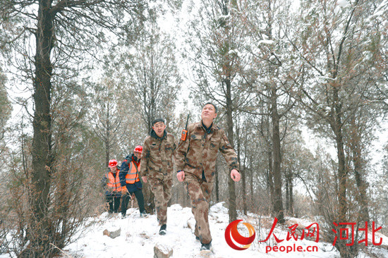 范爱保带领工作人员穿行在涉县偏城林场石峰林区检查森林防火工作。刘学维 摄